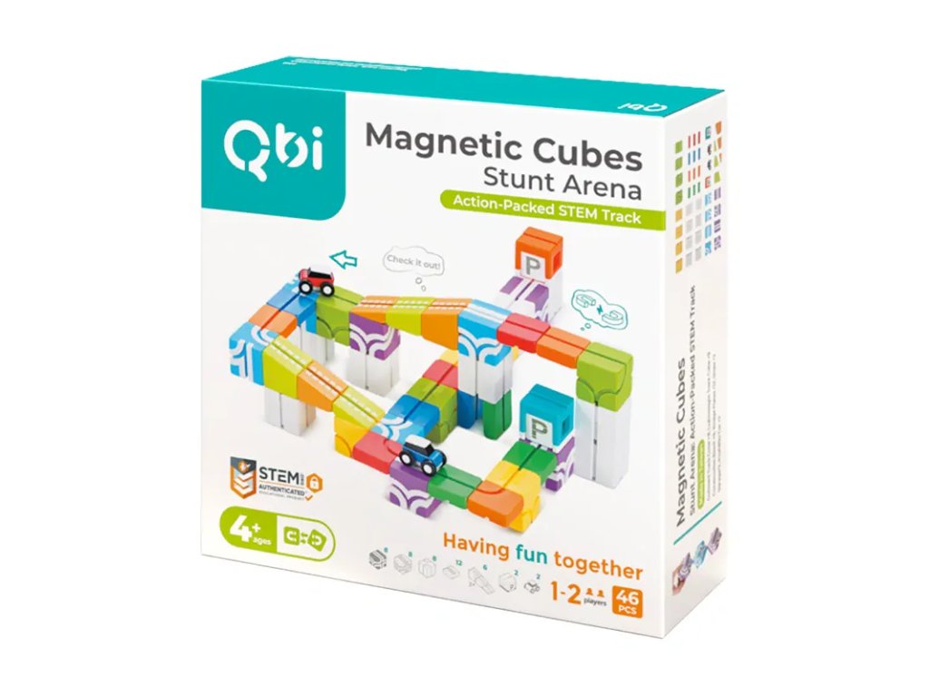 Kaskadérska aréna Qbi 116 je inovatívna magnetická stavebnica, ktorá spája kreativitu so zábavným pretekaním. Deti si môžu vytvoriť vlastnú originálnu dráhu, zapojiť fantáziu a sledovať, ako ich autíčka na zotrvačník prekonávajú mosty, svahy a rôzne prekážky.