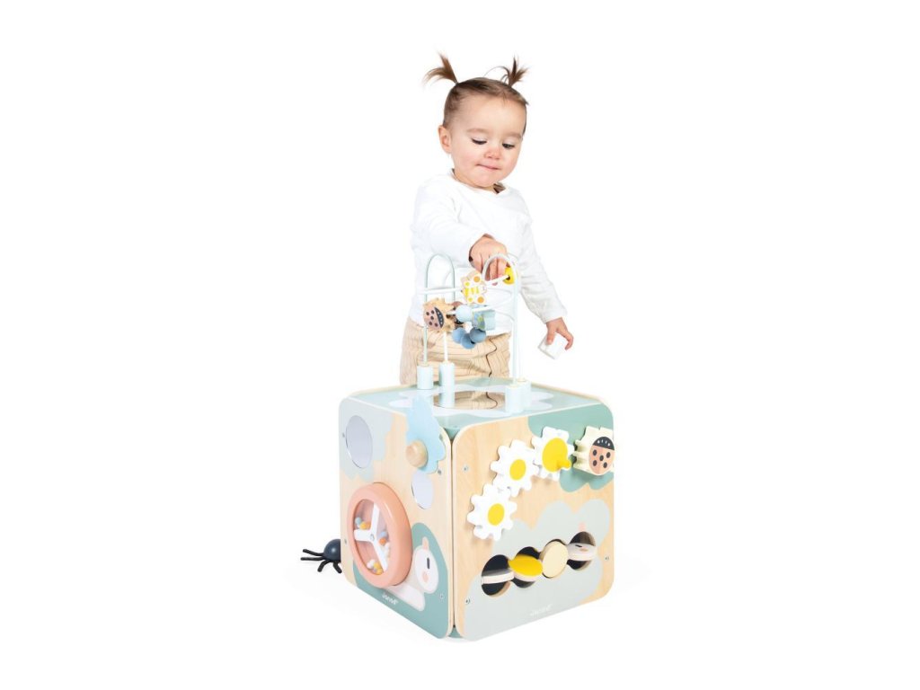 Multifunkčná drevená kocka s aktivitami s motorickým labyrintom, ktorú si každé dieťa zamiluje! Ponúka množstvo zábavy a je ideálna na rozvoj jemnej motoriky, učenie prvých tvarov a farieb. Kompletná hračka na skoré učenie stimuluje zmysly detí od 18 mesiacov a obsahuje až 11 aktivít rozmiestnených po stranách kocky.