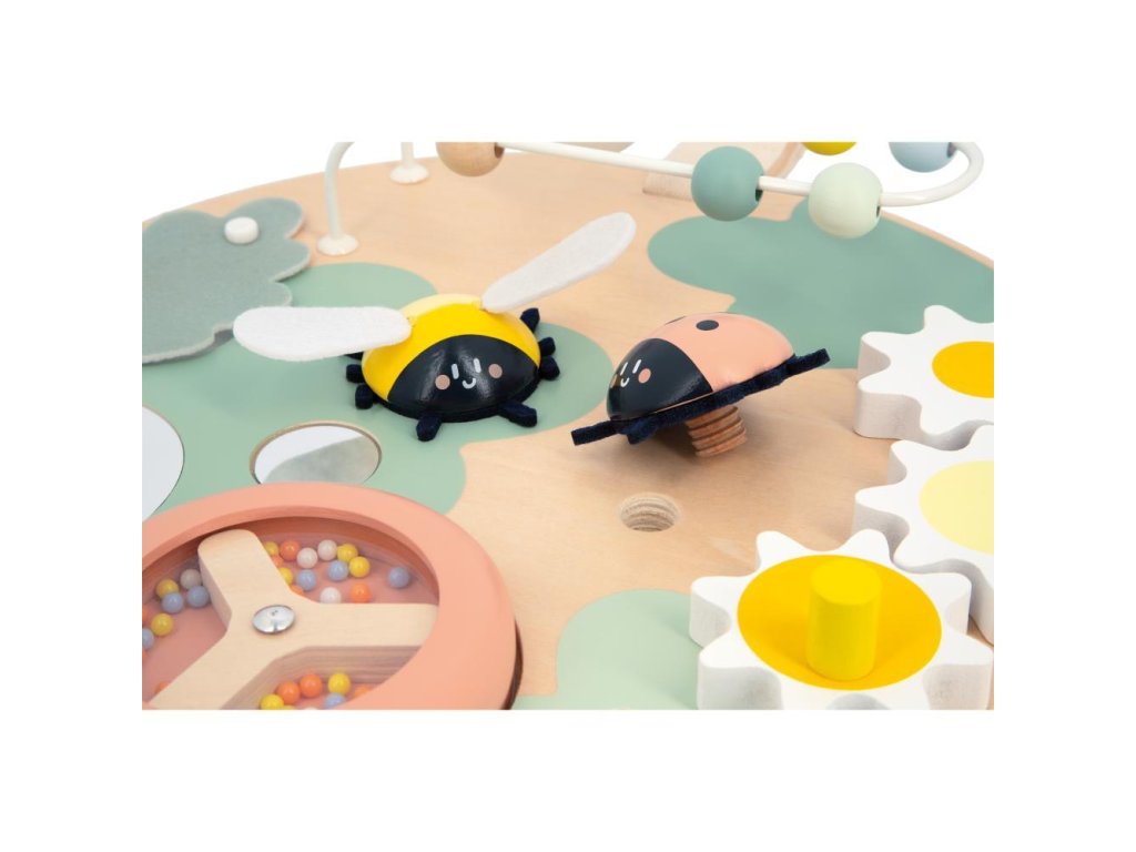 Príďte sa pozrieť, včielka je pripravená odletieť, lienka sa točí a húsenica ide na prechádzku! Táto krásna drevená doska obsahuje množstvo záhradných zvieratiek so zábavnými funkciami a je ideálna na rozvoj jemnej motoriky a zručností dieťaťa. Doska je flexibilná a umožňuje hru v sede, pri stole alebo zavesenú na stenu.