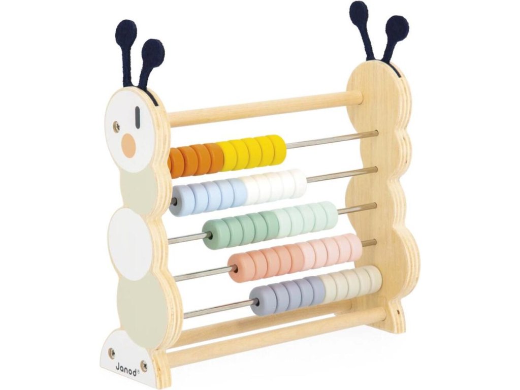 Drevené počítadlo Caterpillar zo série Sweet Cocoon francúzskej značky JANOD je ideálnou hračkou pre deti od 18 mesiacov. Má bezpečný zaoblený tvar a široké boky v tvare húseníc s plstenými anténkami. Pohybom kotúčov sa rozvíja koordinácia oko-ruka a jemná motorika, a zároveň učí počítanie, jednoduché matematické úlohy a rozlišovanie farieb.