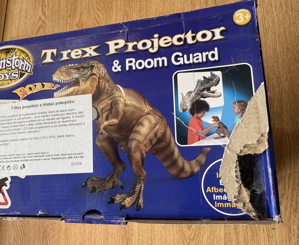 T-Rex projektor a strážca izby - poškodený obal