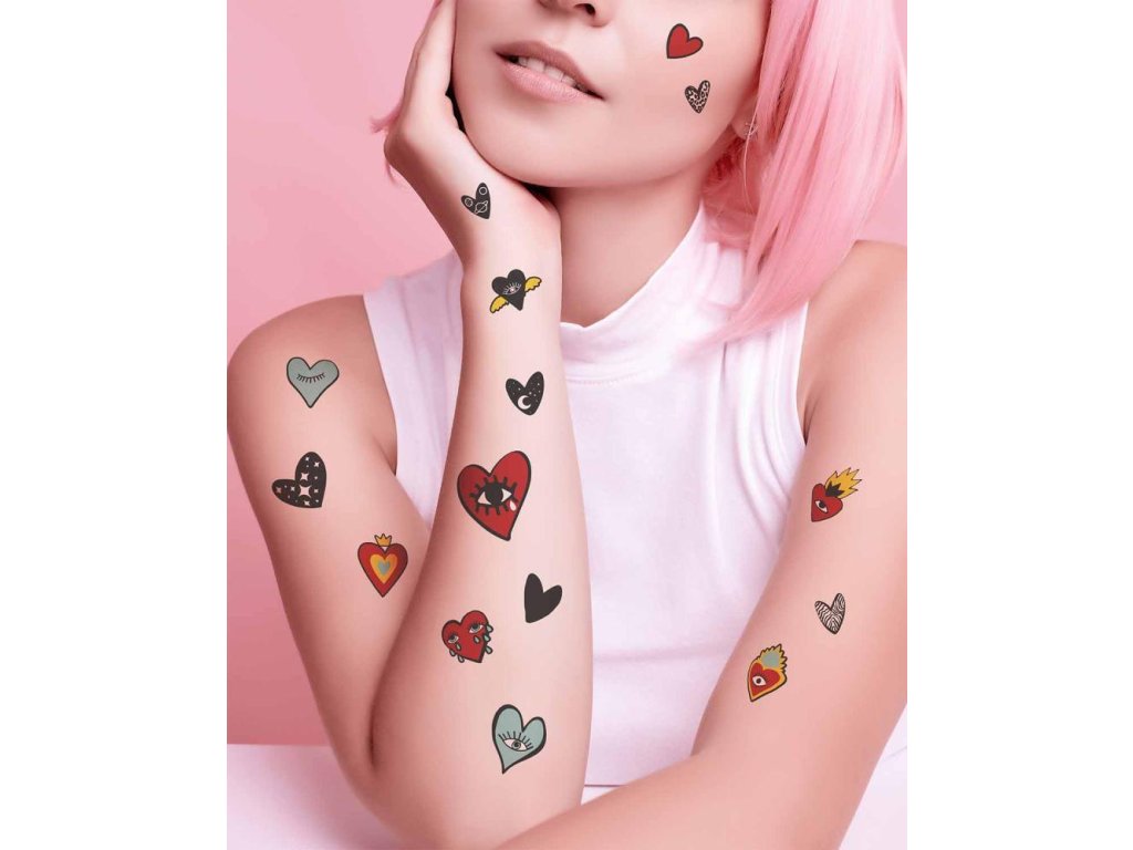 TATTonMe Vodeodolné dočasné tetovačky Srdce mix