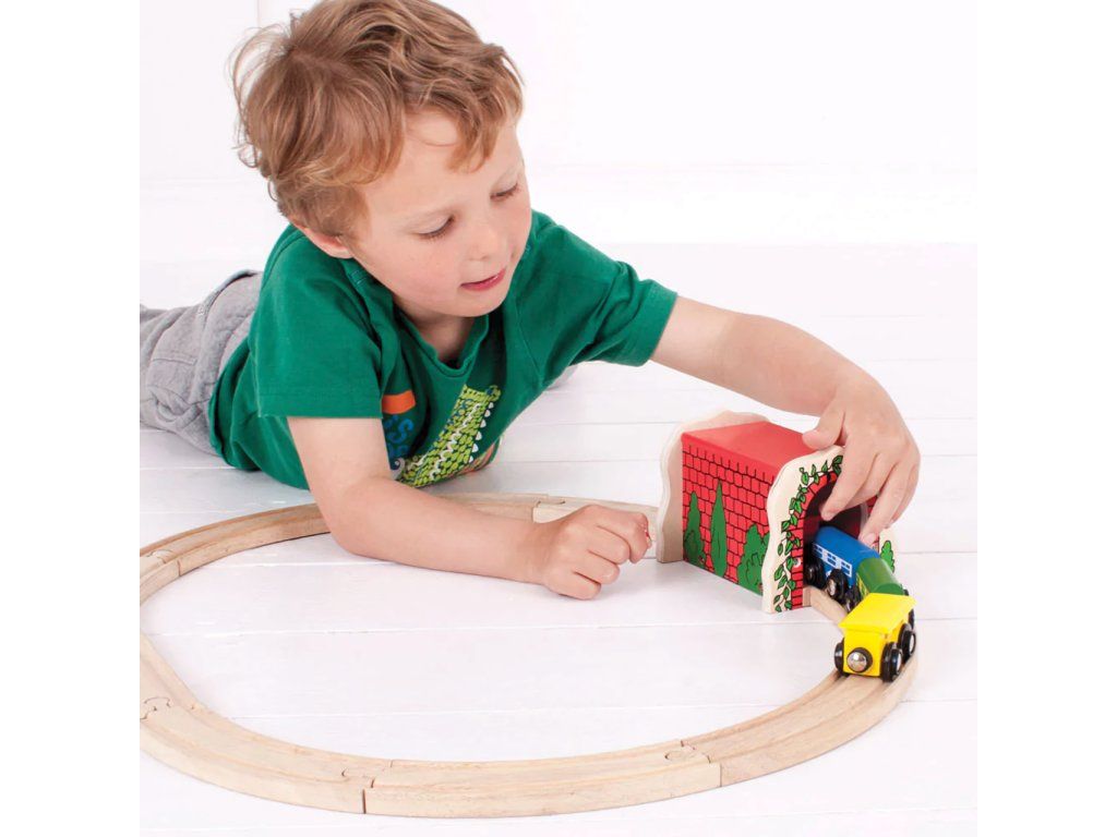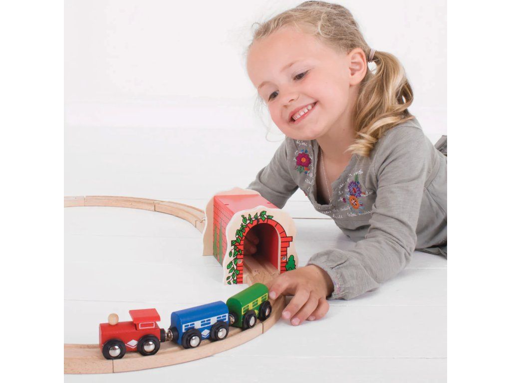 Drevený železničný tunel v podobe tehlovej stavby s vysoko kvalitným povrchom je základným prvkom a skvelým rozšírením každej vláčikovej dráhy. Súčasťou balenia je všetko podľa obrázka.