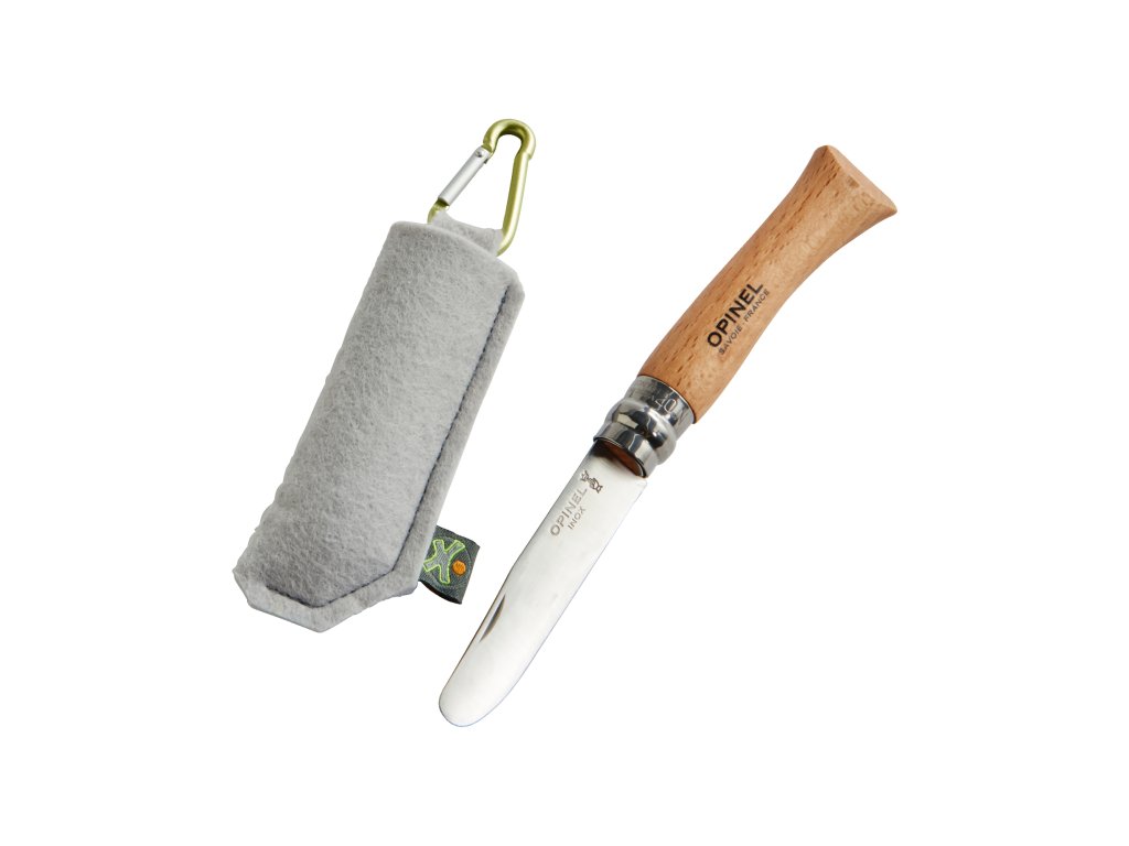 Terra Kids vreckový nôž Opinel je perfektným spoločníkom na túry, pikniky či tvorenie. Praktický detský vreckový nôž z dreva a nehrdzavejúcej ocele je pevný a deťom sa ľahko a bezpečne drží v ruke. Má zaoblenú špičku a dvojitý bezpečnostný krúžok, ktorý zabraňuje nechcenému zaklapnutiu alebo otvoreniu noža. Či už pri vyrezávaní, tvorení z prírodných materiálov alebo pri pikniku – tento vreckový nôž má mnohostranné využitie.