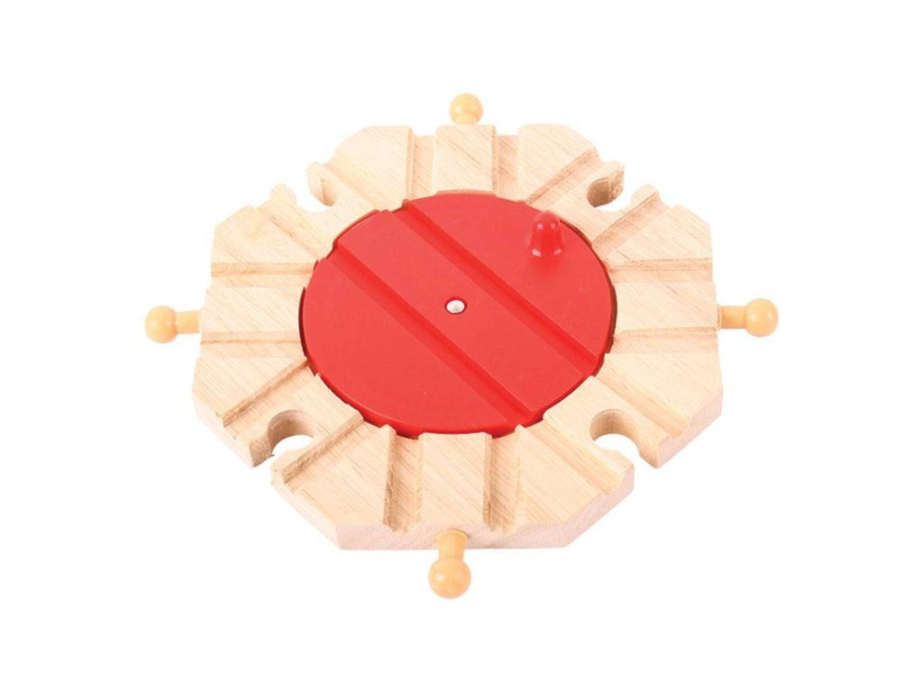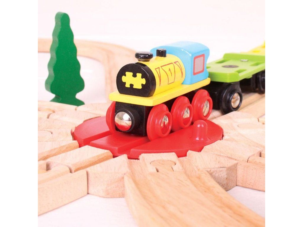 Osemcestná točňa Bigjigs Rail umožňuje vláčikom ľahko zmeniť smer a pokračovať jedným z 8 smerov.