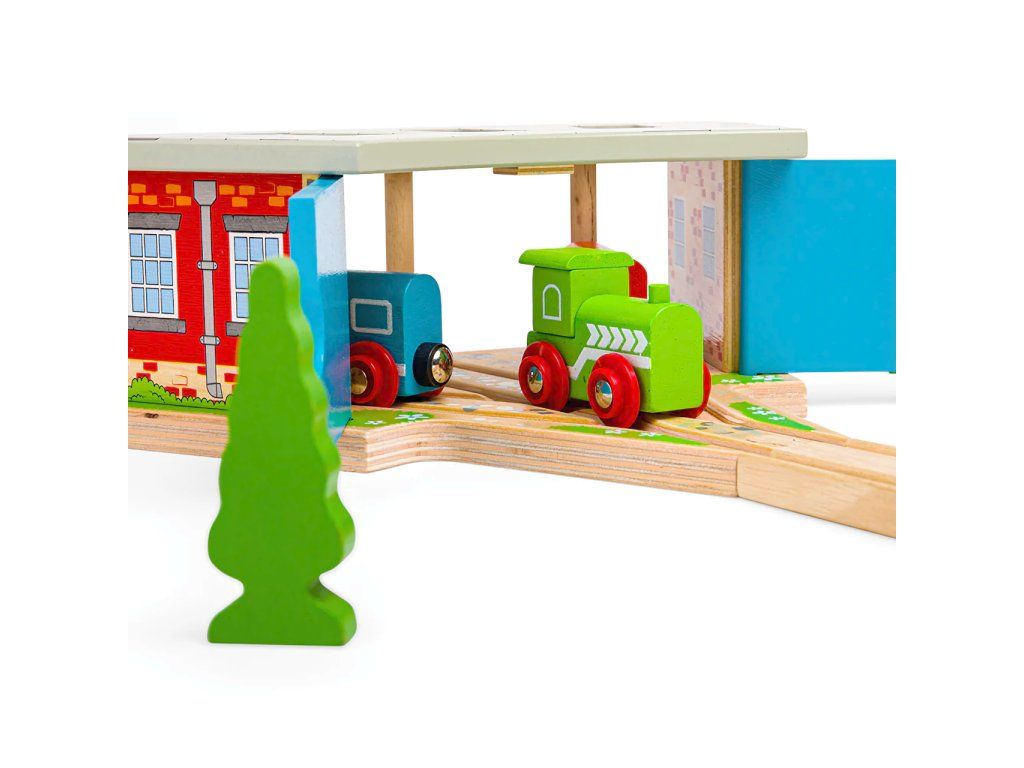 Dômyselne navrhnuté koľaje v prednej časti umožňujú vláčikom vjazd do troch rôznych smerov, čo prináša viac možností hry a organizácie železničnej dráhy.