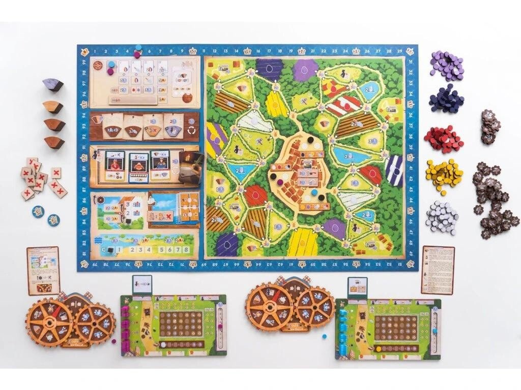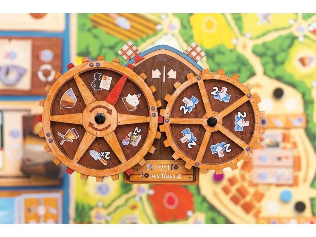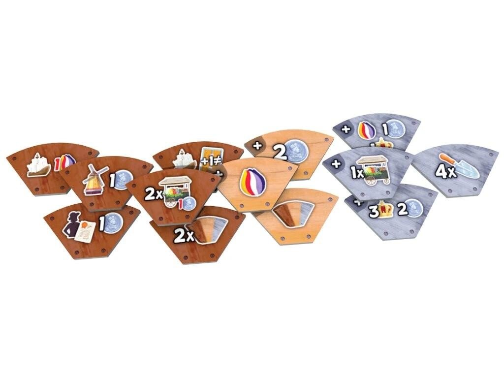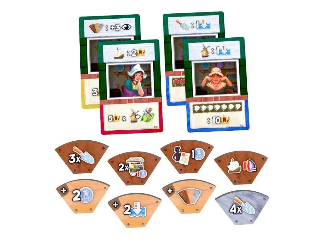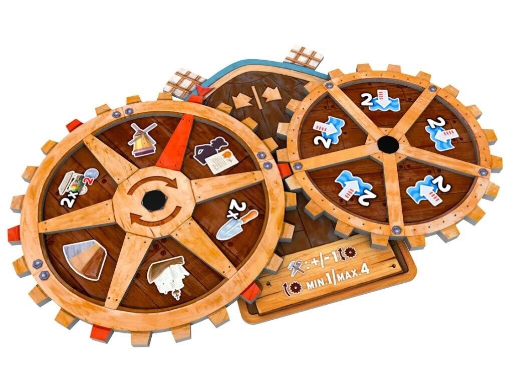 - 4 dosky veterných mlynov (1 pre každého hráča)