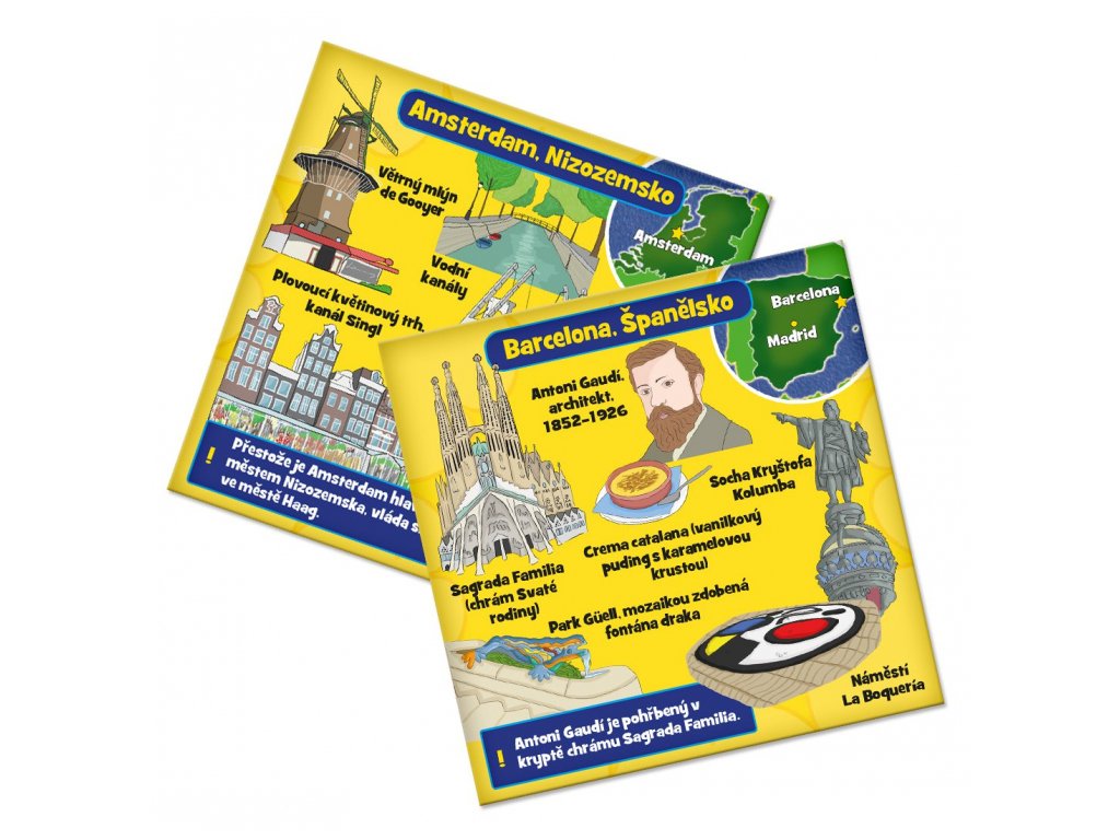 Hra je ve tvaru krychle a obsahuje 70 karet s obrázky měst a vždy 8 otázkami.