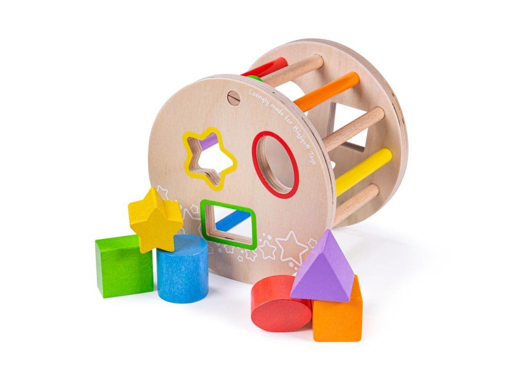 Veľmi obľúbená hračka u detí a batoliat. Tento valcový triedič nie je len šetrný k životnému prostrediu, je aj úplne bezpečný a pomáha vášmu dieťaťu sústrediť sa na konkrétne činnosti a úlohy. Úlohou je prestrčiť farebné tvary správnym otvorom. Následne môže byť hračka posielaná po podlahe, čím vytvára skvelé klapavé zvuky. Vyrobené z vysoko kvalitných materiálov zo zodpovedných zdrojov.