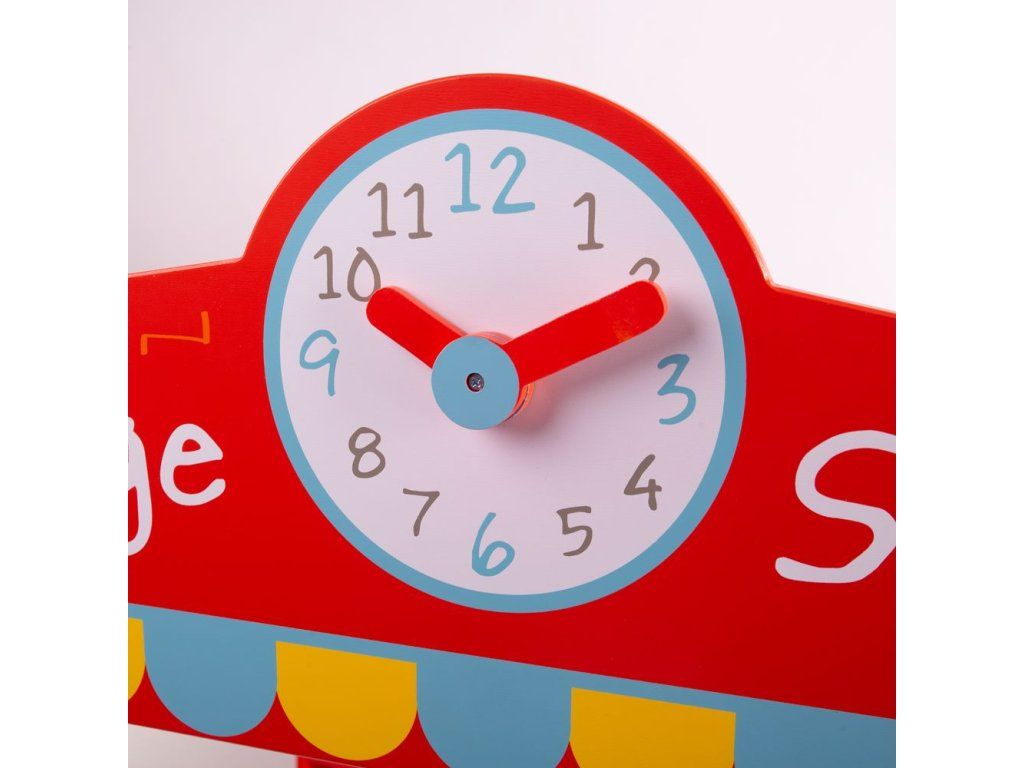 Obsahuje tabuľu na kriedu, kde deti môžu napísať otváracie hodiny a špeciálne ponuky, ako aj hodiny s otočnými ručičkami. Hra pomáha deťom rozvíjať sebadôveru pri hraní rolí predavača alebo manažéra obchodu.