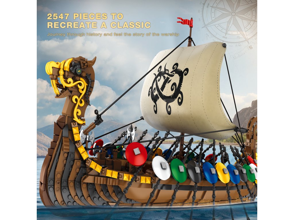 Vydajte sa na dobrodružnú plavbu do dávnych čias s modelom inšpirovaným historickými drakkarmi, slávnymi vojnovými loďami severských bojovníkov. Tento detailne prepracovaný model z 2547 dielikov ponúka jedinečnú kombináciu elegancie, realizmu a historického ducha. Po zostavení má dĺžku 54 cm a stane sa dominantným kúskom každej zbierky.
