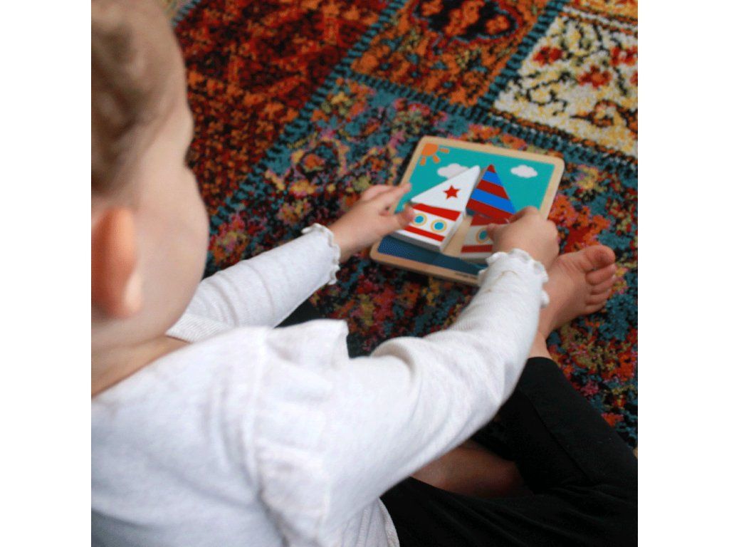 Pri priraďovaní každého pestrofarebného dreveného dielika k správne tvarovanému otvoru na základnej doske si deti hravou formou precvičujú svoje schopnosti.