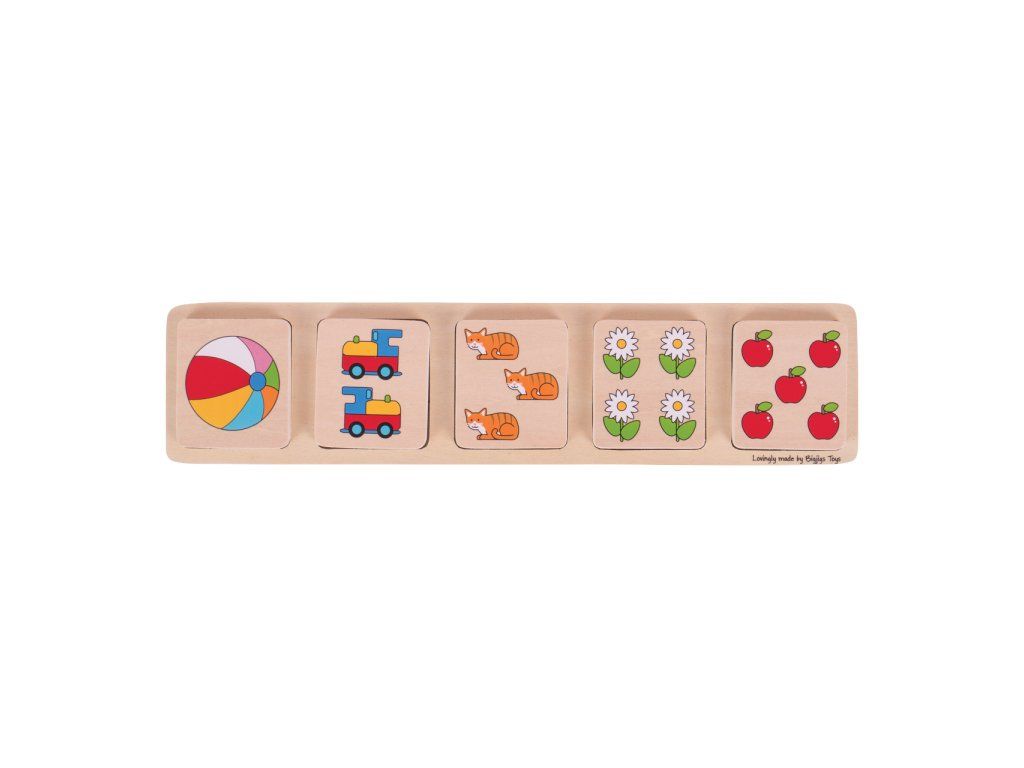Spočítajte počet obrázkov na jednom dieliku puzzle a priraďte ho k správnemu číslu na základnej doske.