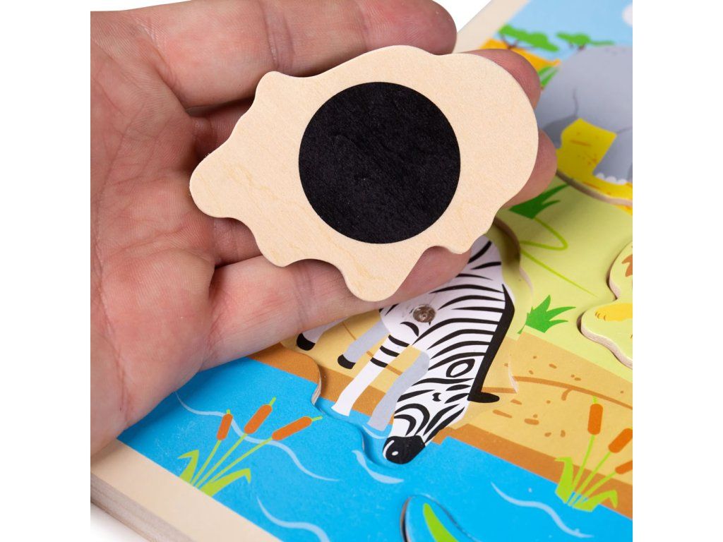 Po vložení správneho dielika do vkladačky sa z integrovaného zariadenia ozve charakteristický zvuk zvieraťa, ktorý deti priraďujú k správnym tvarom a hravou formou tak rozvíjajú svoje poznávacie schopnosti.