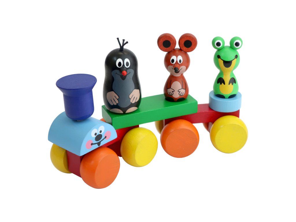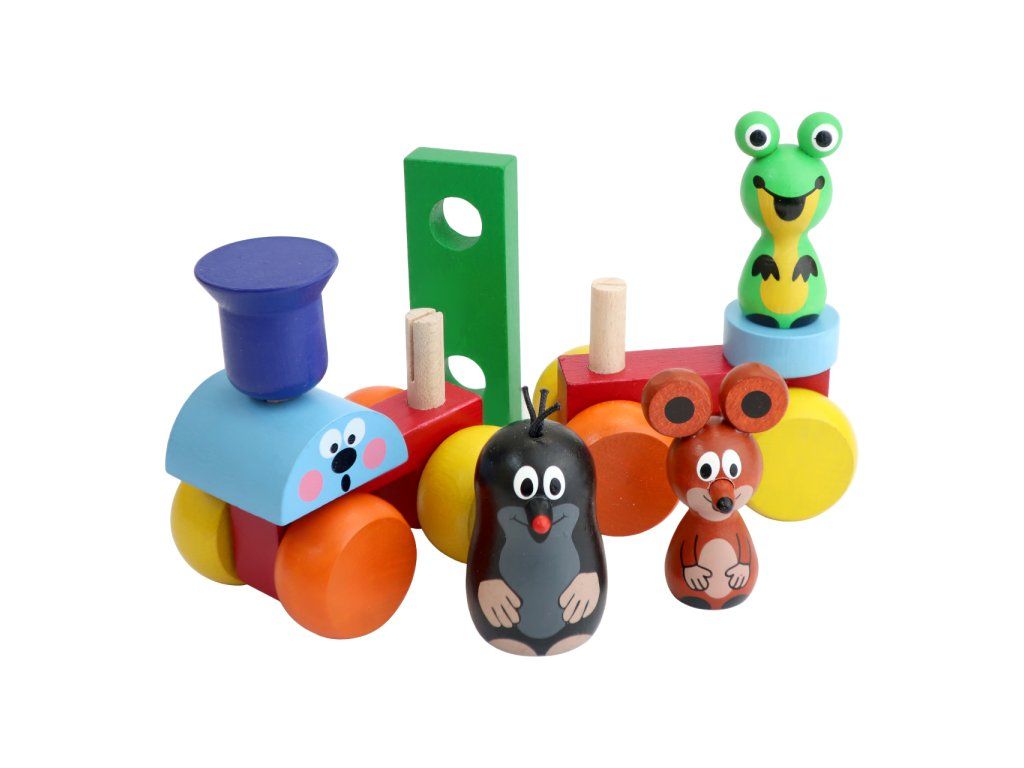 Vláčik Krtko je rozkladací, s možnosťou ľubovoľne meniť poradie figúrok. Veselá drevená hračka, ktorá ponúka deťom veľa možností na kreatívnu hru.