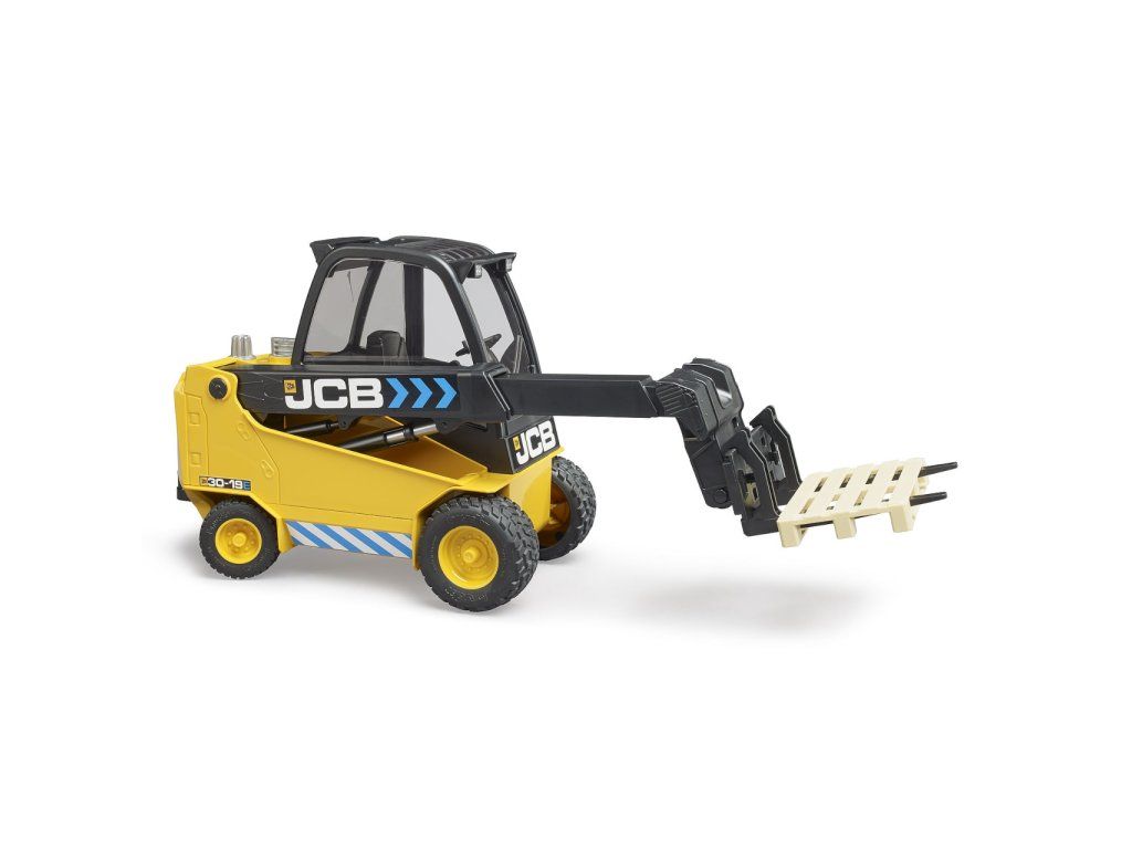 Vozík je plne riaditeľný a vybavený teleskopickým ramenom, ktoré je možné vysúvať a aretovať pomocou otočného kolieska. Náklon zdvíhacích vidlíc je nastaviteľný, čo umožňuje presnú manipuláciu s nákladom. Kabína má otvárateľné dvere a je kompatibilná s figúrkami BRUDER BWORLD.