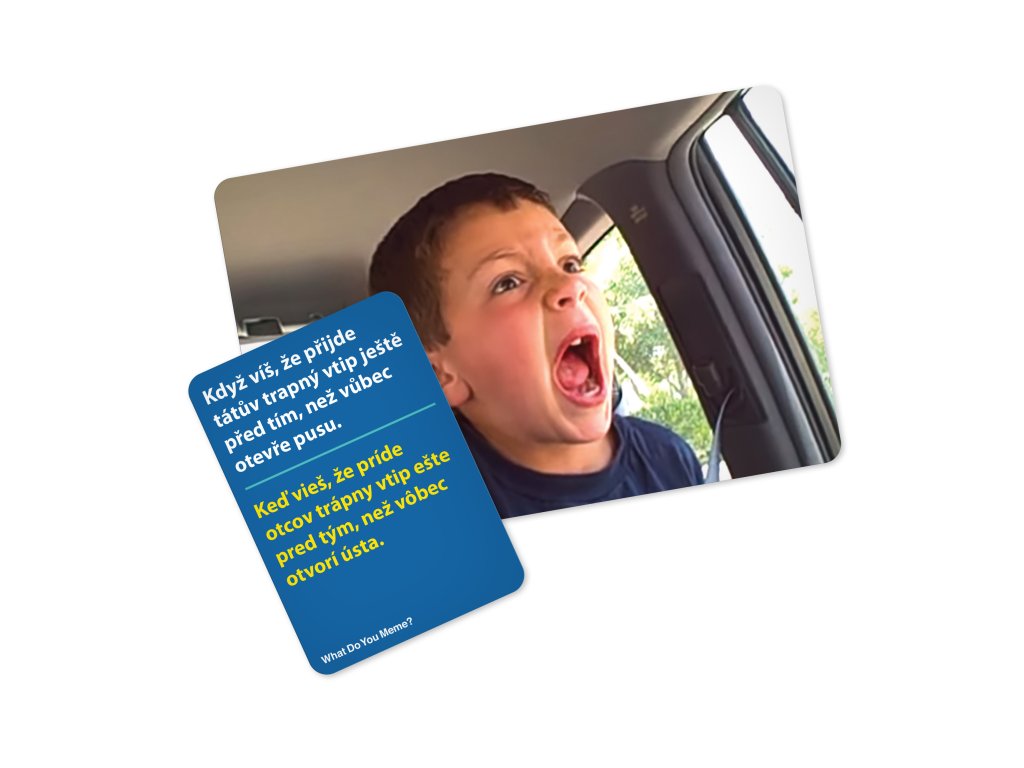 Párty hra, určená nielen teenagerom, v ktorej budete hľadať medzi kartami so slovným popisom tú, ktorá daný meme vystihuje najlepšie. Rodinná verzia je prístupnejšia aj pre mladších hráčov – menej vulgarizmov a humor, ktorý zaujme takmer každú rodinu.