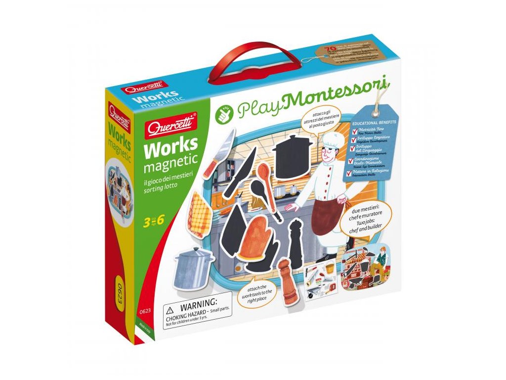 Pri upevňovaní magnetického náčinia do obrázkov si deti precvičujú jemnú motoriku a vizuomotorickú koordináciu, pričom zároveň rozvíjajú chápanie súvislostí a vzťahov.