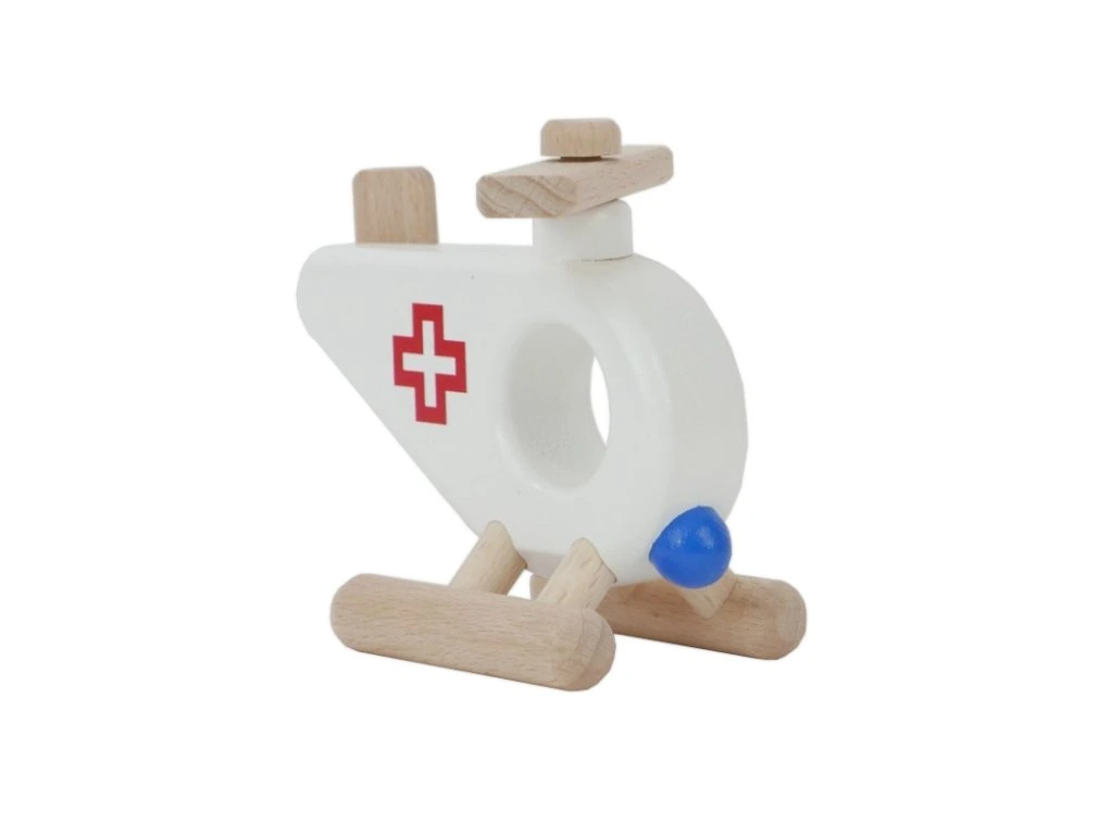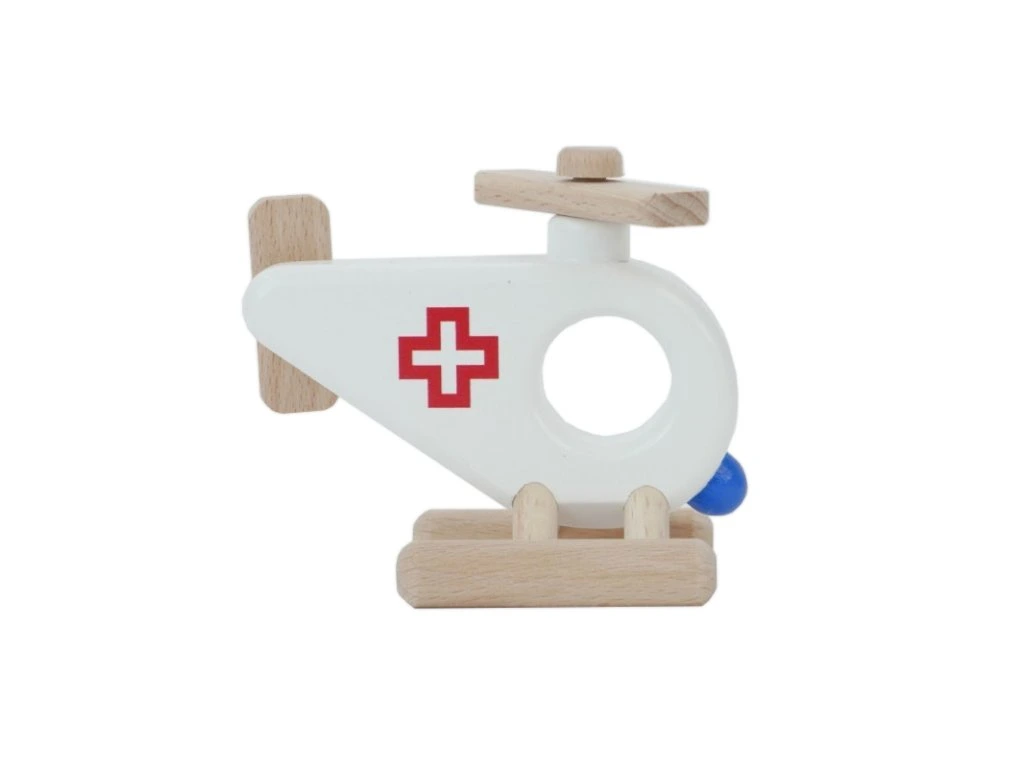 Kto sa to vznáša nad hlavou? Záchranárska helikoptéra. Táto hračka bola navrhnutá s ohľadom na malé ruky dieťaťa – tvar, veľkosť otvoru aj pohyblivé prvky sú prispôsobené. Každý pohyb hračky – tlačenie, váľanie, jazda po krivkách nábytku alebo kreslenie čiar vo vzduchu – zároveň pomáha dieťaťu objavovať priestor a dynamiku ukrytú v tele. Hra s helikoptérou rozvíja hrubú motoriku.