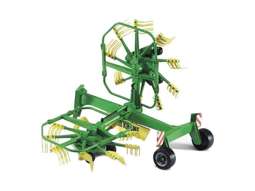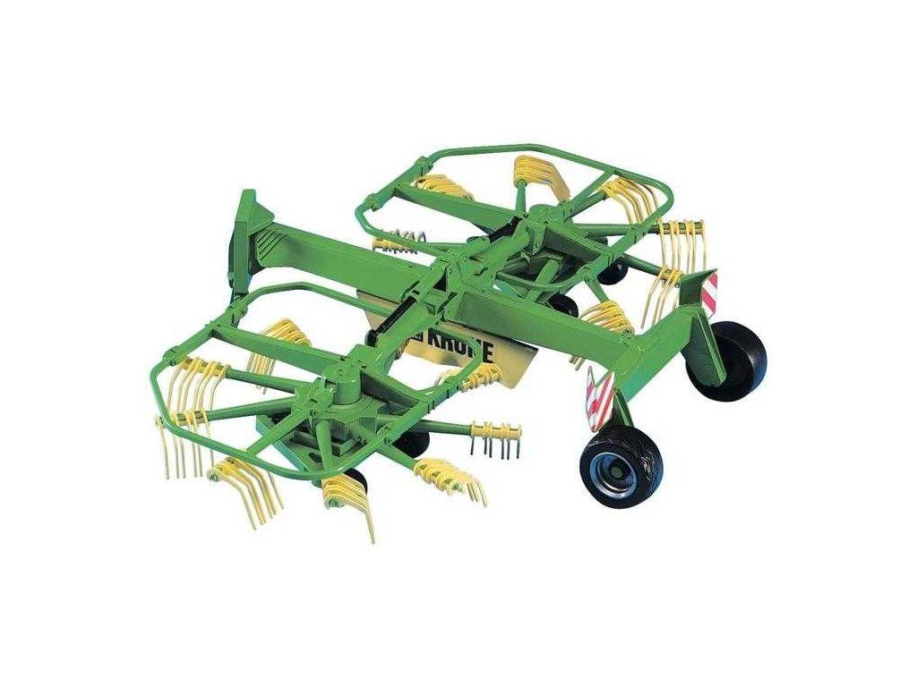 Bruder 2216 ohrňovač sena KRONE je verná kópia originálu so všetkými funkciami a spracovaním. Obracačka má dve ramená s lopatkami, ktoré sa pohybujú okolo ramien. Ramena je možné pri transporte vyklopiť smerom nahor. Vyrobené v Nemecku z kvalitných materiálov.