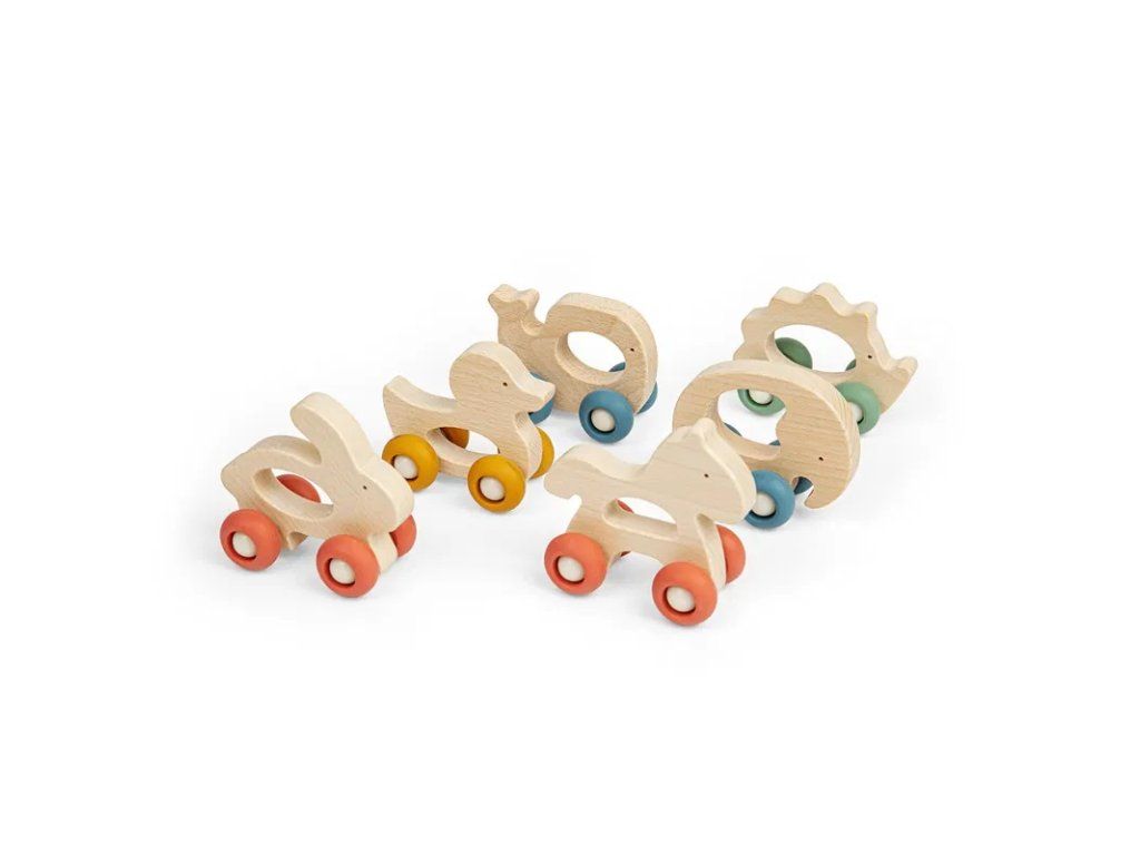 Vydajte sa za dobrodružstvom so zvieratkom na kolieskach v prevedení prírodného dreva so štyrmi farebnými kolieskami. Zvieratko má výrez pre jednoduché uchopenie malými detskými rukami.